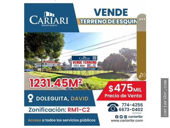 Lote esquinero estratégicamente ubicado entre Calle José Linton Navarro y Avenida 4ta Oeste, con una superficie de 1,231.45 m².